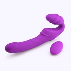 Supercharged with a rumbling buzz, a vibrating strap-on dildo can turn up the pleasure of both partners. The secret is in the removable bullet that can be slipped into the harness so that it rests against the clitoris of a wearer, or it can be laid inside the dildo making it super-orgasmic for a receiver. Dual dildos often feature a bullet in each of the shafts so that both lovers would reach their climaxes simultaneously.