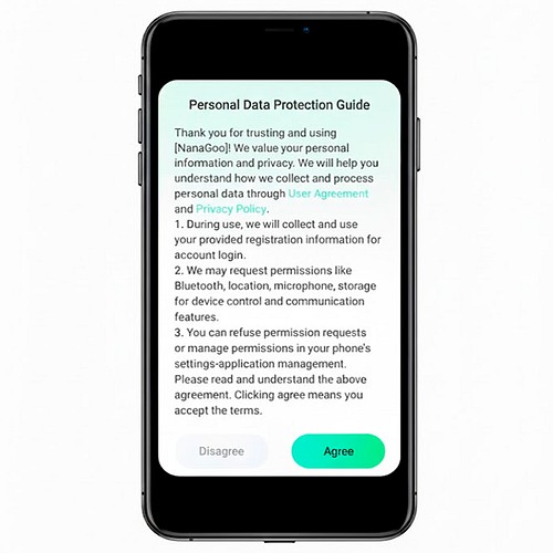 Open the app on your phone. The app will request access to the following: Bluetooth, Location Information, Storage permissions, and Microphone - please allow access in your phone Settings. Accept the User Agreement.