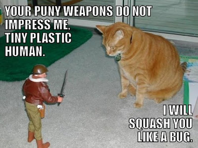 My kids introduced me to LOLcats. Hiliarious, as My Man, a big hairy, bulk of a man LOVES LOLcats and does "cat talk." One of my kids got a new phone and it had kittehs for a background, and My Man walks in the room and says, "I HAZ GIWWAFS." and he showed me his phone, and he had a funny girrafe pic on there. You had to be there, but it was SO out of character. Also, when my kids and I go on LOLcats, he hangs around and talks about "cheezbrgrers! I peez haz cheezbrgers?" If you saw him, in all his muscles, hairy, Dom, tattooed glory, you'd know why this is SO funny.