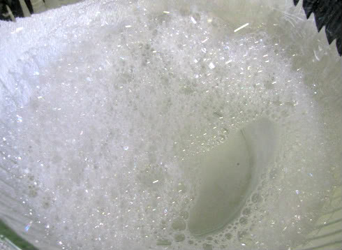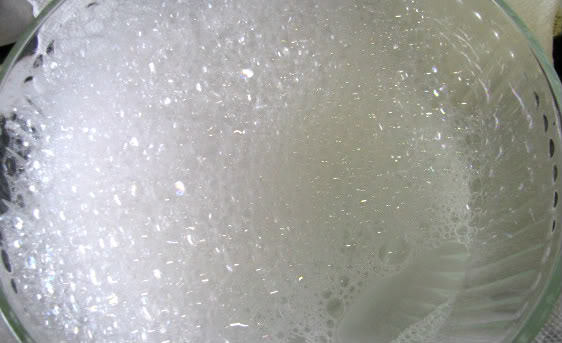 I put the spoon in the water to get the last of the wash off and to stir up some bubbles.