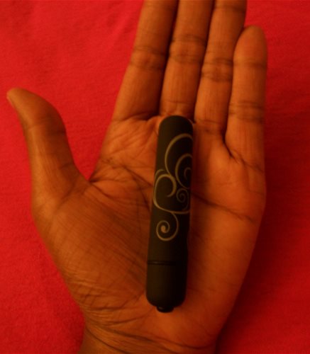 This toy is shaped like a small cylinder as most bullets are, but it is slightly longer than the average bullet. I like this size and I also like the design very much. It has beautiful grey swirls detailed along the length of the bullet. I think the swirls compliment the black vibe the best. It is also very small and compact, which adds to the gracefulness of the design. It's also not too small but not too big; easy to hold but not large and bulky. The size makes it perfect for beginners, and it's also easy to hide. The noise when the vibe is turned on may give away its location, but it's so small you can hide it or store it anywhere. You can take this toy wherever you wish, for you can simply toss it into your purse or suitcase and go. Though, if you do take it with you then remember to make sure there are no batteries in it so it doesn't turn on while traveling.