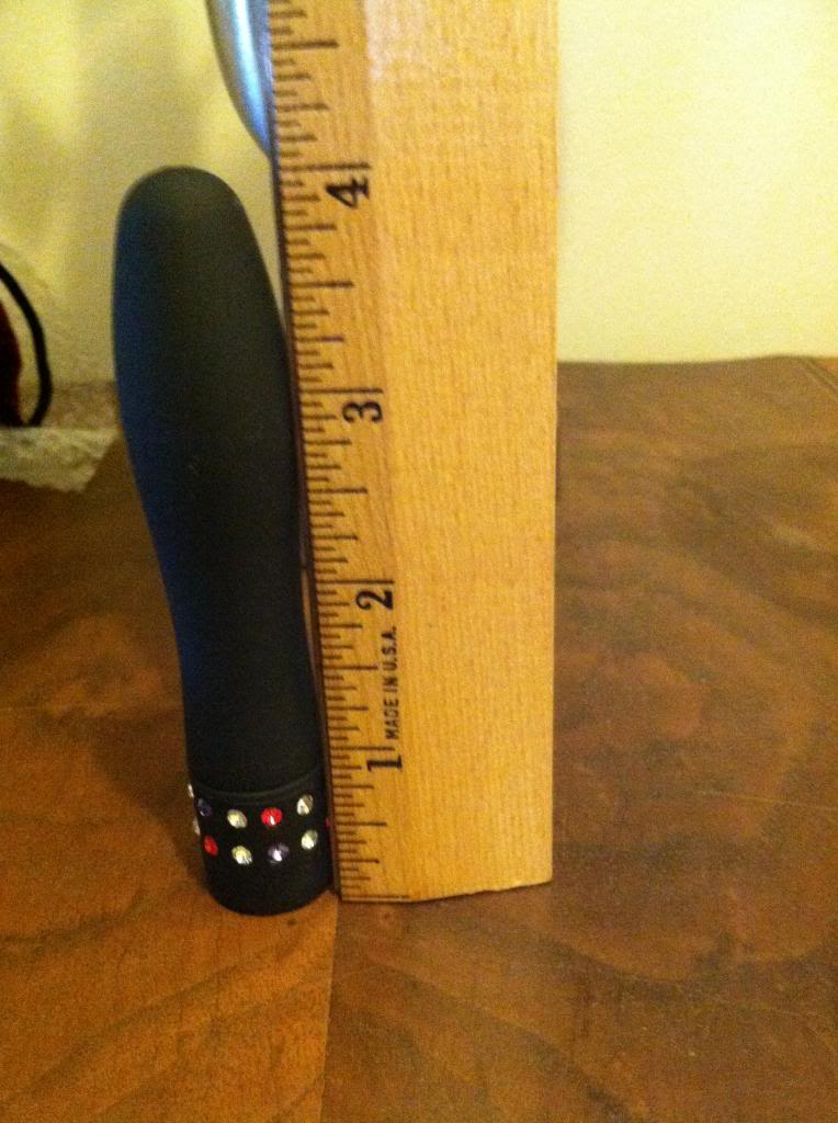 Sizing it up; this bad toy comes to 4 inches with a little over 3 being insertable.